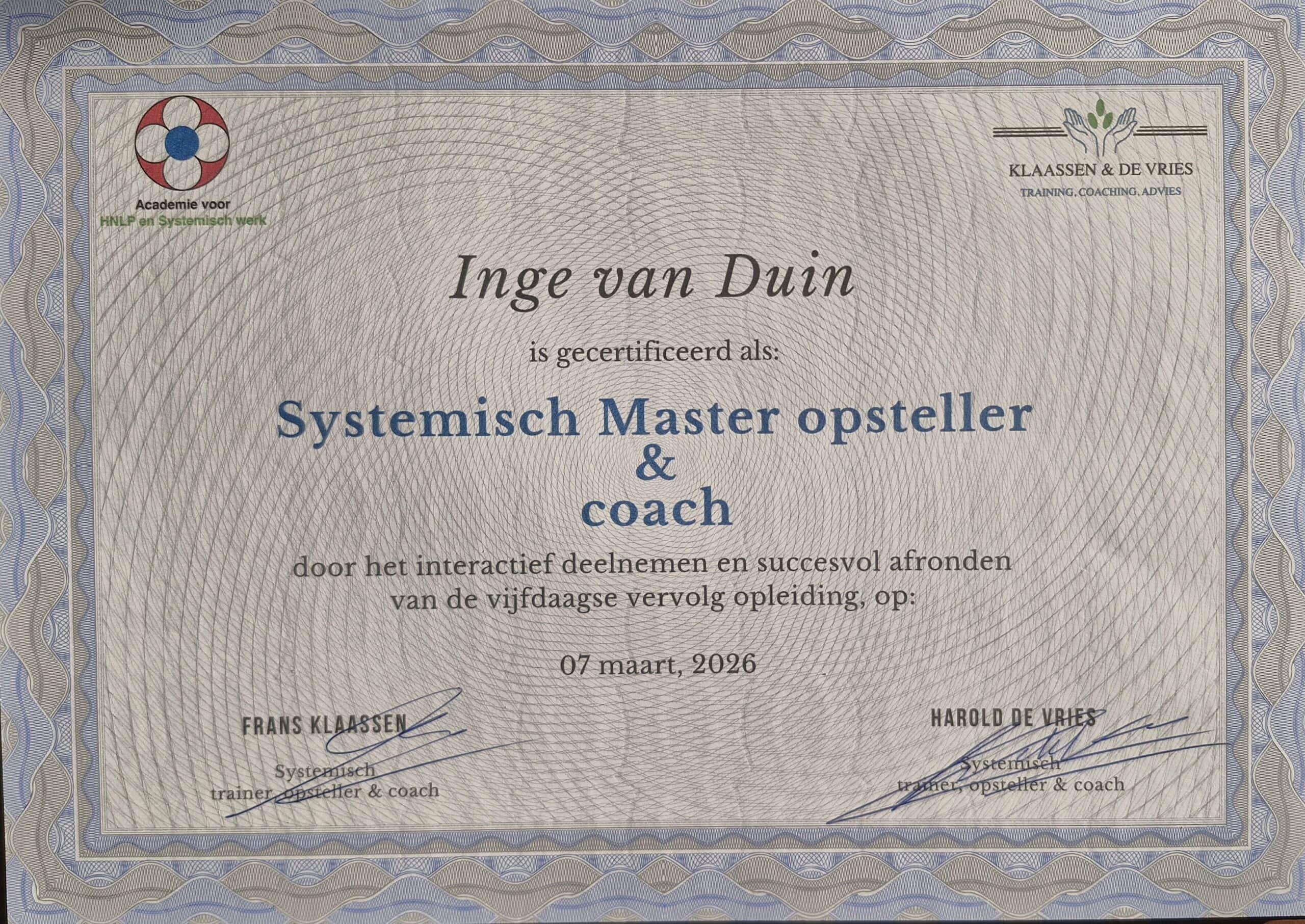 Yes, nog meer verdieping in systeem opstellen Na 5 intensieve en prachtige dagen ben ik geslaagd voor mijn master systeem…
